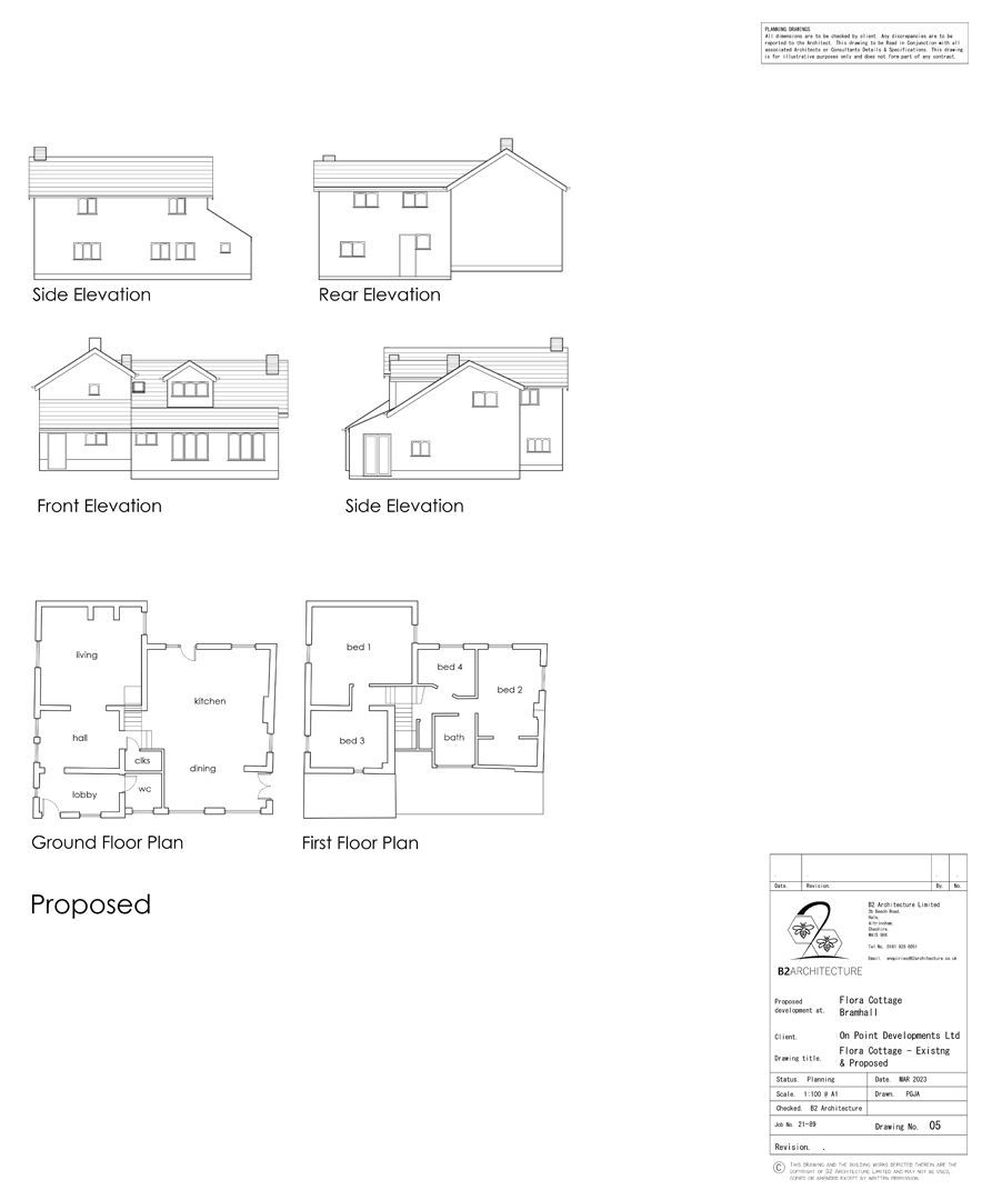 A new development of three contemporary style two bedroom bungalows plus one existing house which is to be refurbished.